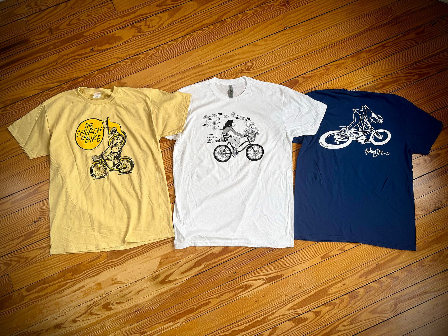 We’ve donated over $1500 to raise bicycle awareness in small towns around New Jersey and help get safe bike lanes as well as donating 11 new and very lightly used bicycles to kids in need. All that is great but we want to do so much more but need the help! We worked with some of our favorite artists to make a tshirt design we sell on the website and have more in the works but we need to make some space… so we put all the tshirts on sale for the rest of the month.